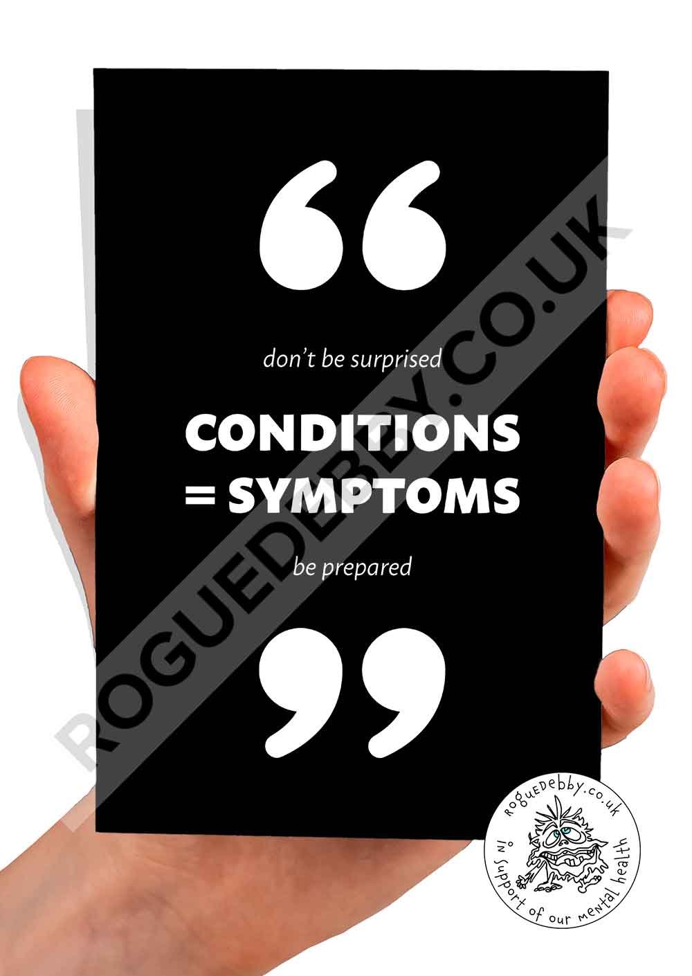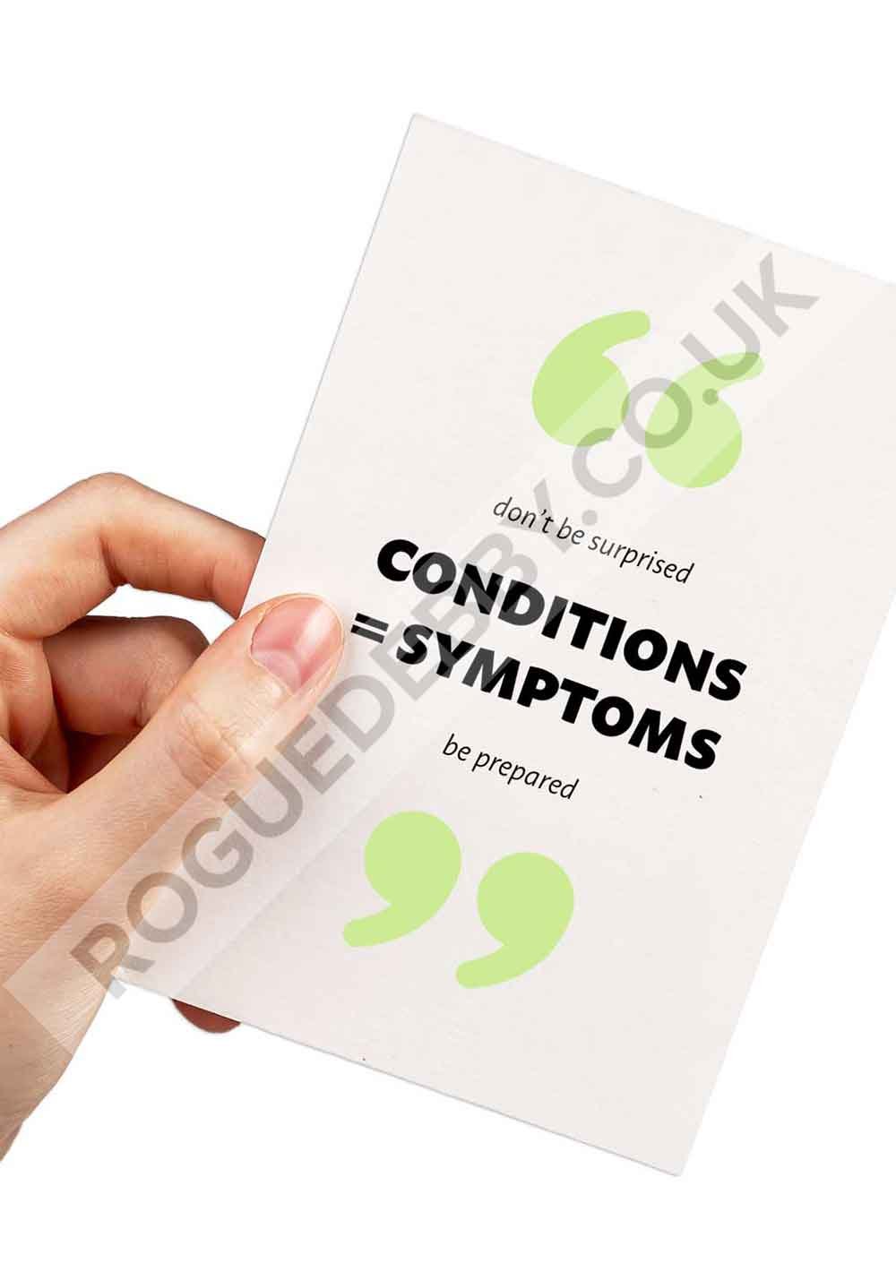 Can card - Conditions = Symptoms, double sided black/white.